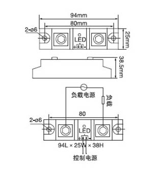 四. 大功率固態(tài)繼電器外形尺寸和安裝接線圖:(單位:mm)